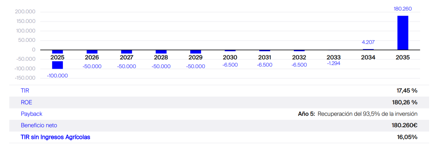 Para inversores particulares, la inversión cuenta con incentivo fiscal del 50% y TIR estimada del 17,45%. Además, la inversión cuenta con dos opciones de recompra obligatoria por parte del promotor, quienes en caso de incumplimiento deberán pagar una penalización del 12% anual en forma de acciones de la compañía, garantizando así la seguridad y liquidez del capital invertido.